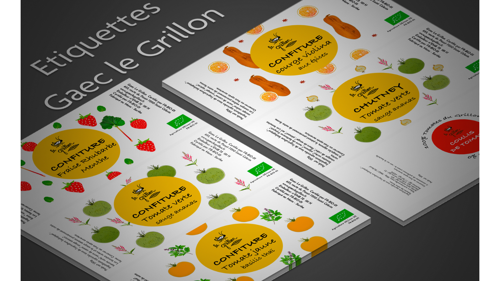 Projet création étiquettes - confiture et chutney du Gaec le Grillon -